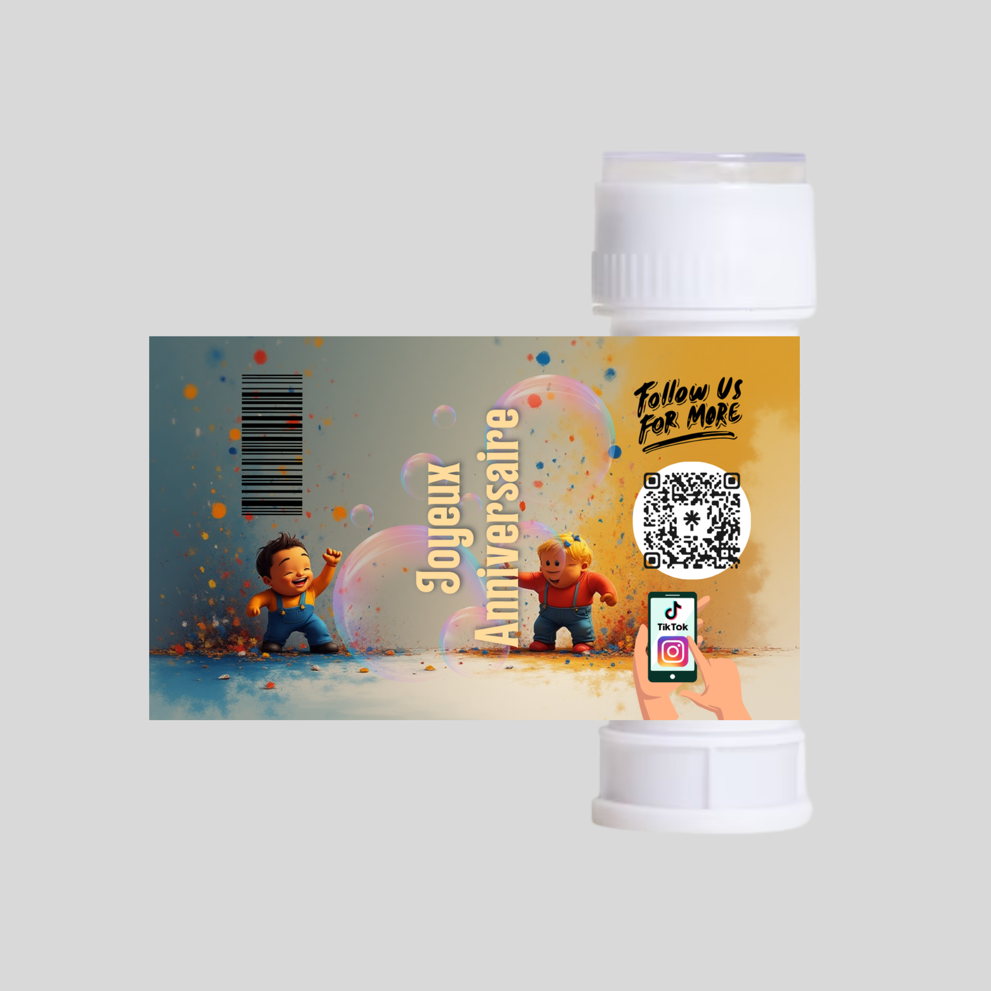 Créez des moments magiques avec ce tube à bulles de savon personnalisé. Chaque soufflé libère une cascade de bulles scintillantes qui dansent dans l'air. Parfait pour les fêtes, les événements ou simplement pour égayer une journée ordinaire, ce tube personnalisé devient un souvenir unique et touchant. Facile à utiliser, il ravira petits et grands avec ses bulles délicates et colorées.