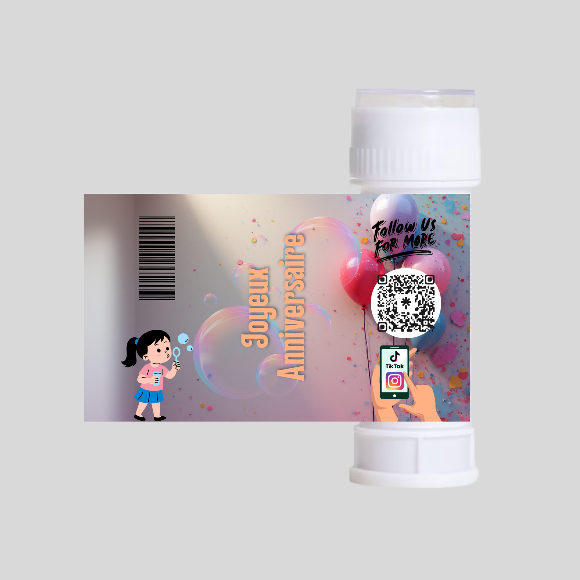 Créez des moments magiques avec ce tube à bulles de savon personnalisé. Chaque soufflé libère une cascade de bulles scintillantes qui dansent dans l'air. Parfait pour les fêtes, les événements ou simplement pour égayer une journée ordinaire, ce tube personnalisé devient un souvenir unique et touchant. Facile à utiliser, il ravira petits et grands avec ses bulles délicates et colorées.